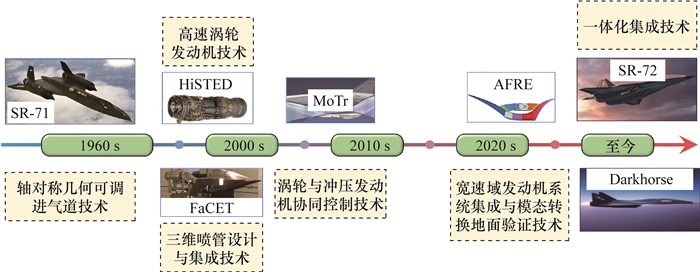 | 美国 | SR-71 J-58发动机 | ![]() | 突破了轴对称几何可调进气道、模态转换和引射喷管等技术瓶颈,被认为是世界上最早投入使用的TBCC发动机[10-11] |