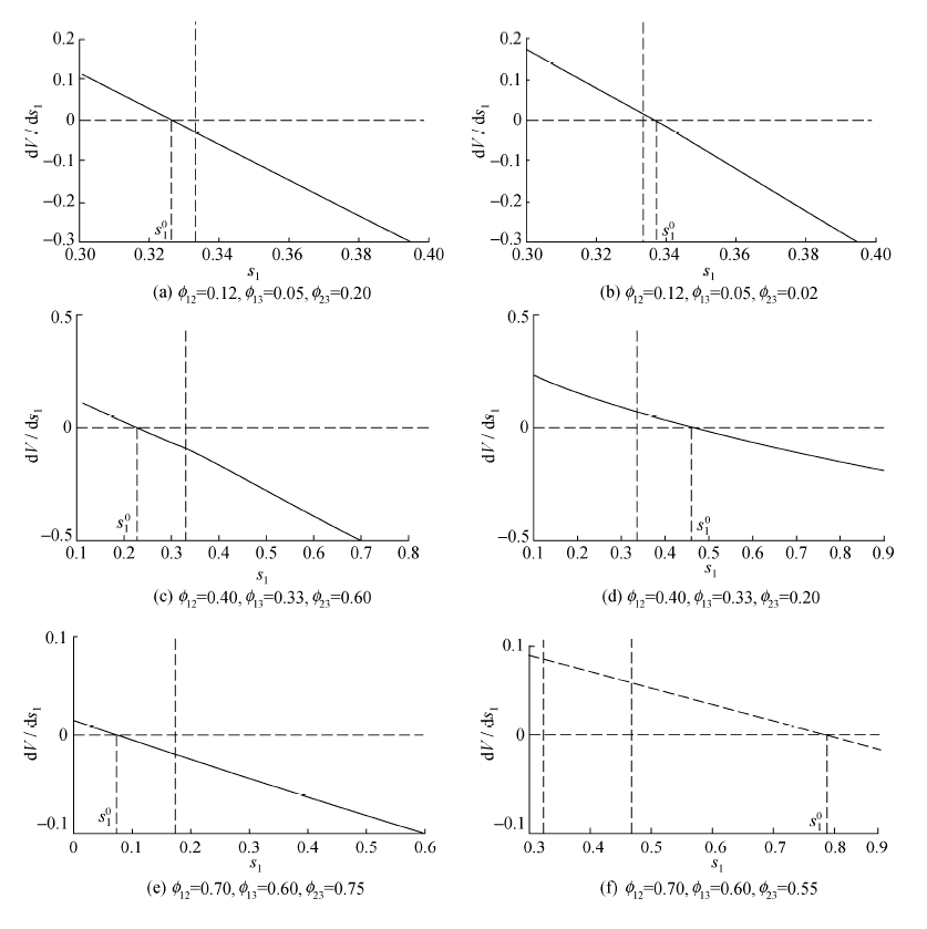 这里,当地区1的产业份额s1=1/3时, dV/ ds1恒等于0。即有