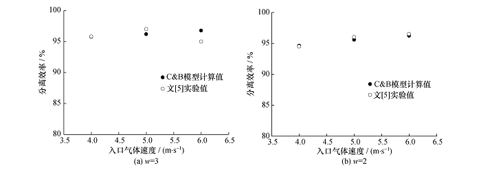 4) 利用C&B模型,计算了波形板分离器和旋风分离器对液滴的分离效率,计算结果和实验值及商用软件计算值吻合,验证了该模型的正确性;
