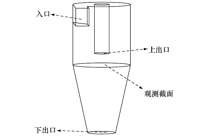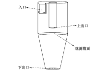 利用 C&B模型计算波形板内汽水两相流动时,可做二维简化。而实际工程中通常要做三维计算,因此采用旋风式气液分离器验证 C&B模型应到在三维空间时的正确性。采用小型旋风分离器[6],其几何形状如图6。旋风分离器内流动的介质为常温常压空气和邻苯二甲酸二辛脂( DOP)油状液滴。空气的密度ρ g=1.225 kg/m3, 动力粘性系数μ g=1.7894×10-5 Pa· s; DOP液滴密度ρ DOP=980 kg/m3。