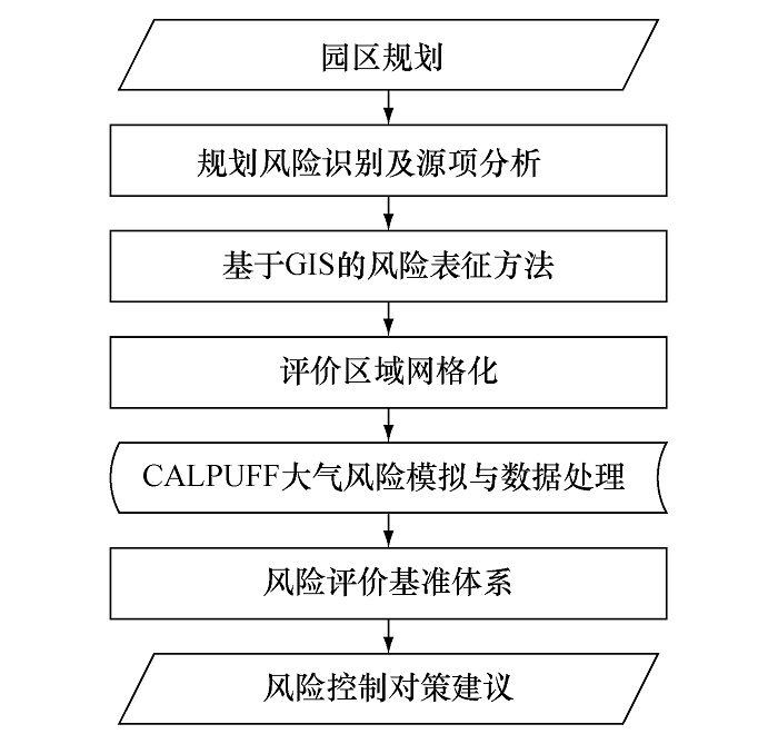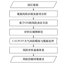 与建设项目环境风险评价相比,园区规划阶段的风险评价在评价对象、关键问题、调控目标等方面均具有显著差异。针对规划阶段风险源信息模糊性强的特点以及空间布局矛盾对大气风险模拟精确性和表征准确度的需求,本文参考经典风险评价流程[12],提出园区规划大气风险评价方法(图1)。