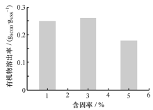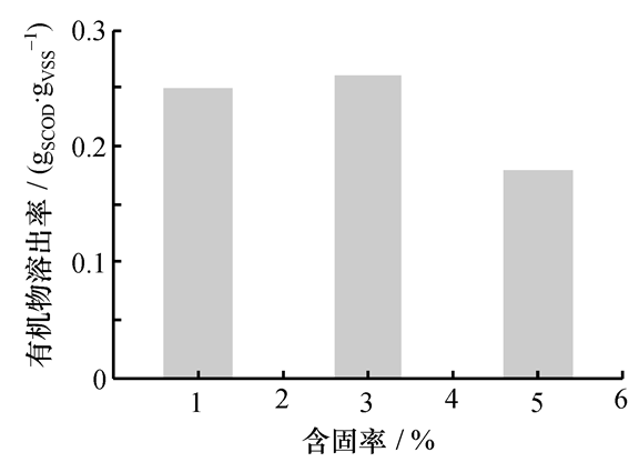 污泥含固率是水解速率的重要影响因素之一。由图3可以看出, HRT为1d、 温度54~60℃时,含固率分别为1%、 3%、 5%时污泥的有机物溶出率分别为0.25、 0.26、0.18