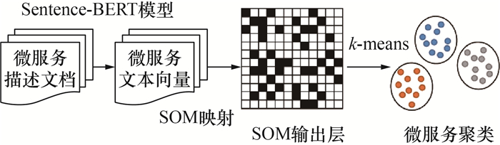 | 图 5 基于Sentence-BERT和SOM的服务聚类算法框架 |
