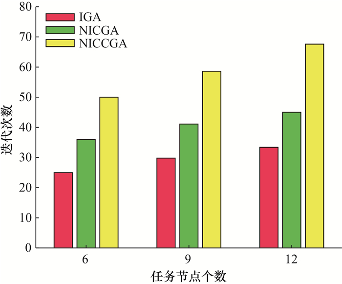 | 图 8 不同任务节点数下遗传算法得到最优解的迭代次数对比 |