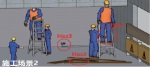2.2 实验材料本研究使用SketchUp Pro 2018创建了8个虚拟的建筑施工场景(示例场景见表 1),其中危险包括坠落、坍塌、电击、破损、爆炸和不安全行为,这是目前施工现场常见的6类危险[7, 29]。构建的EMMEs是配合着语音解释的专家危险识别眼动轨迹视频(图 2),总时长116 s。现有关于施工现场危险识别绩效的研究中,高效的搜索路径依次为人、设备、环境[7, 30]。因此,本研究将EMMEs材料中专家眼动轨迹设置为人—洞口—设备—环境。视频材料中的语音解释是为了向学习者强调危险识别过程中的关注重点。此外,为了避免学习效应带来的实验测量误差,EMMEs学习视频中的施工场景与正式测试中的场景不同。