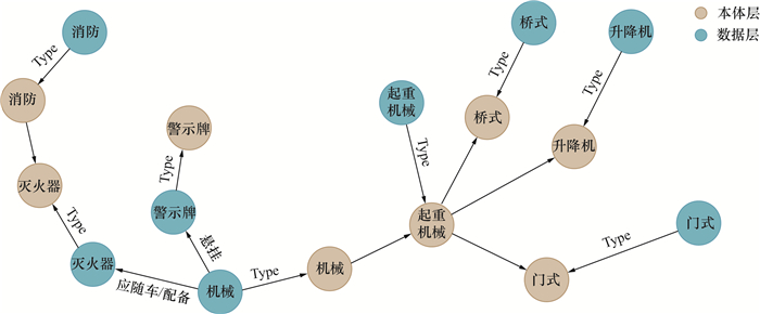 在构建数据层的基础上,向知识图谱中引入本体结构能够更精准地捕捉到知识单元间的逻辑关系[12],近年来在众多领域的知识建模中得到应用。惠记庄等[13]建立了适用于钢结构桥梁的本体模型,通过专家评估对各指标赋予权重,用以支持工程决策。张彬桥等[14]将本体方法运用于水电站运维知识库的构建,开发了相关的安全管理领域应用场景。吕佳挺等[15]对基于BIM的工程、采购、施工(engineering, procurement, and construction,EPC)项目的信息模型建立本体表达,开发出信息管理系统。陈培智等[16]提出了一个适用于建筑抗震性能评估的本体框架,并应用于建筑抗震性能指标的自动化预测。Le等[17]在公路领域基于本体构建了一个数据转换、集成、检索的互联系统。
