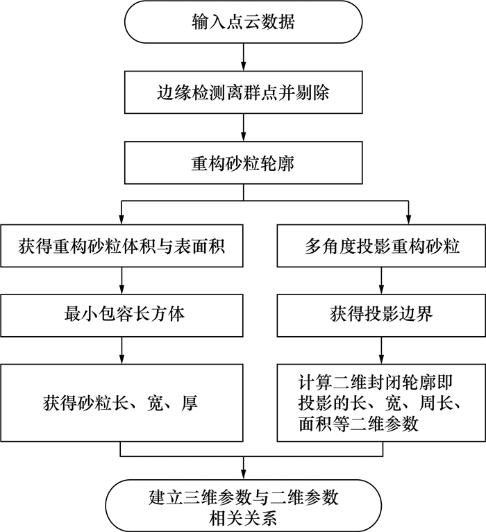 | 图 4 砂粒三维、二维形态参数获取算法流程图 |