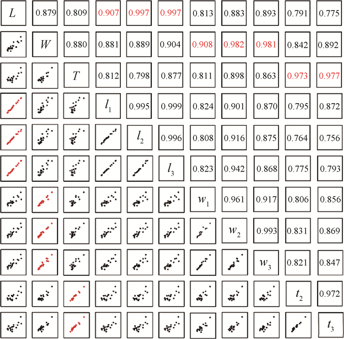 | 图 9 二维和三维尺寸参数相关性矩阵图 |
