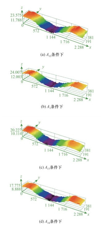 | 图 8 不同γ -Glo浓度复合滑液中XLPE盘磨痕的三维轮廓图(单位:μm) |