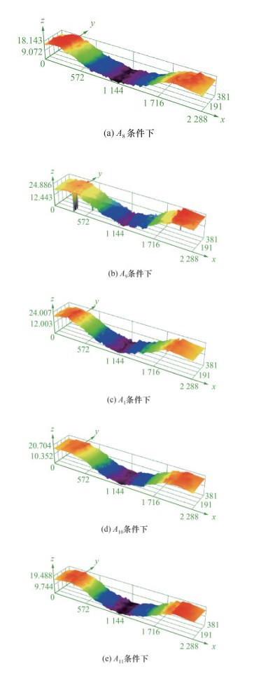 | 图 5 不同总蛋白浓度复合滑液中XLPE盘磨痕的三维轮廓图(单位:μm) |
