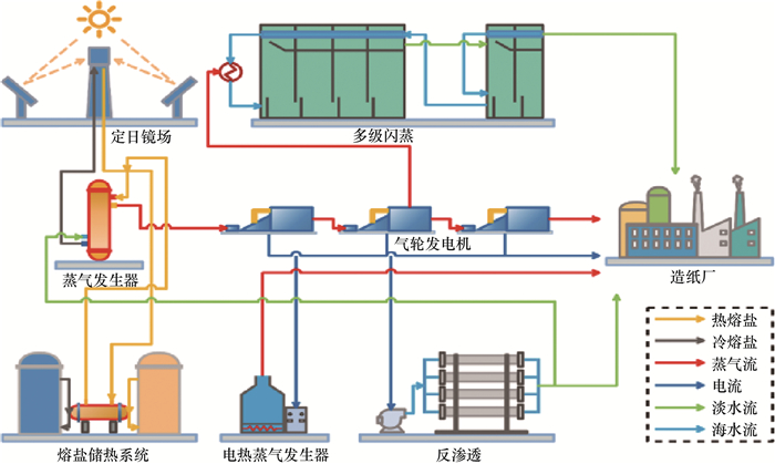 | 图 1 海水淡化-光热电站集成联产系统结构 |