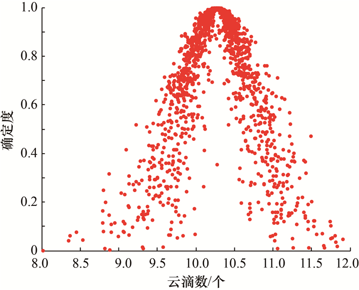 | 图 1 正态云发生器的云滴分布 |