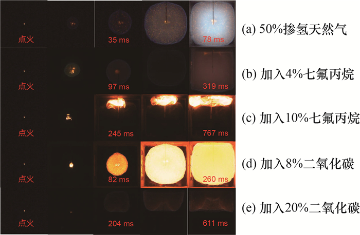| 图 4 掺氢天然气抑爆火焰图像 |