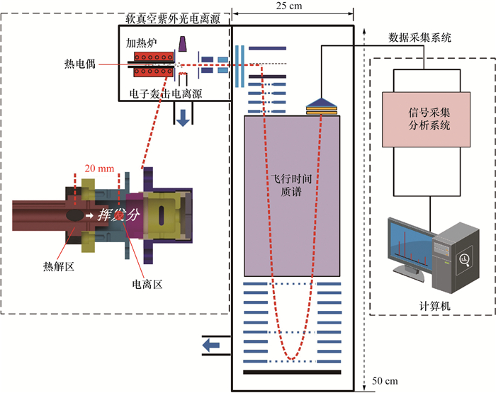 2) 实验装置具备两种不同的离子源,即电子电离(70 eV)和软真空紫外光电离(10.6 eV),用于检测轻质气体和有机挥发物。