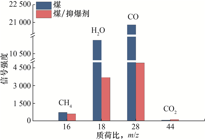 | 图 7 煤、煤/抑爆剂样品热解过程的有机挥发物质 |