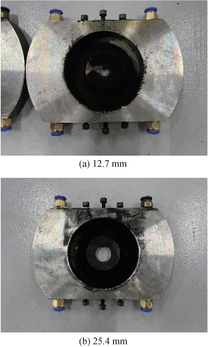 1) 根据FAA机匣烧穿试验规定,孔径25.4 mm为标准孔径,但是实际事故发生时烧穿孔径无法预知,因此需要研究不同大小烧穿孔径的影响,本次试验设置喷嘴孔径分别为12.7、25.4和50.8 mm共3种尺寸。
