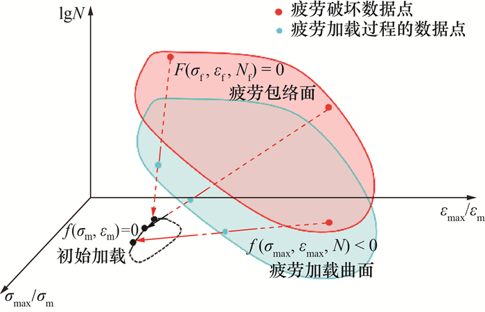 | 图 1 疲劳加载曲面与疲劳包络面的示意图 |