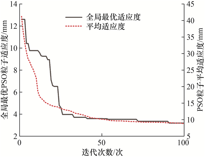 | 图 11 示例零件全局最优PSO粒子适应度随迭代次数的变化 |