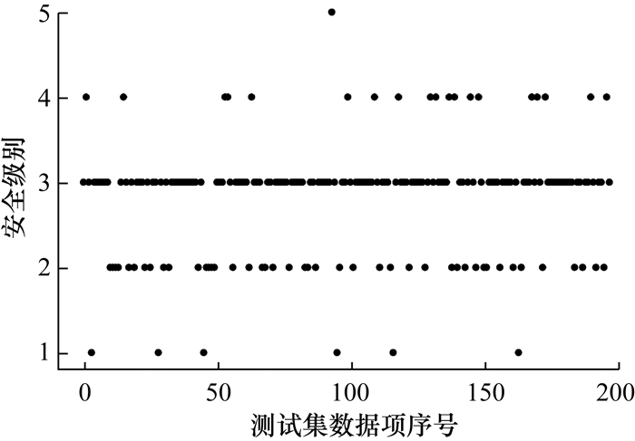 将数据集DAC按照4∶1划分为训练集和测试集,即训练集包含800项数据,测试集包含200项数据。其中,测试集200项数据的安全级别如图 4所示。
