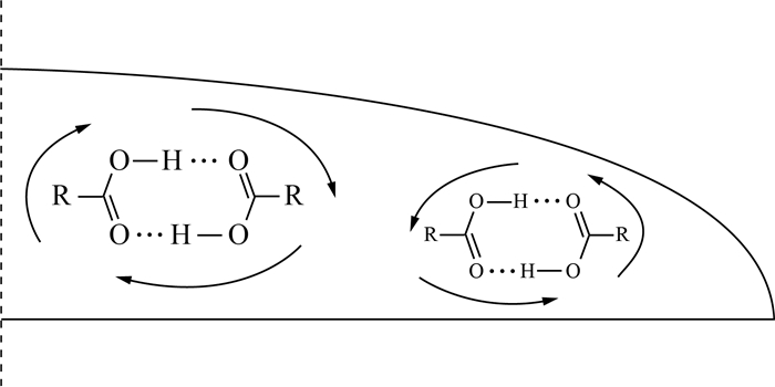 乙酸和乙醇液滴表面出现HTWs和B-M流胞,原因是液体存在分子间氢键。文[32, 35]的实验研究发现,HTWs和Marangoni流胞形成是由于不确定力驱动,但未深入探究驱动这种流动的力;只有极性分子液滴在加热时才会产生HTWs和Marangoni流胞。文[31, 36-37]表明,在加热过程中,极性分子类液滴内部的分子间氢键因吸收大量能量而断裂,并释放键能,从而导致分子空间结构发生变化,形成大量微胞。微胞最初为大型多边形网络结构,后由于不同液滴的表面张力不同,因此微胞在液滴表面张力引导下产生不同的热流型,在红外热成像条件下可观察到HTWs和B-M流胞。