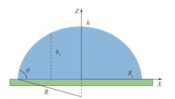 其中:hi为任意i的液滴高度,Sfd为湿润面积,Vfd为附壁液滴体积,Rc为润湿半径,θ为接触角,R为半椭球形半径。