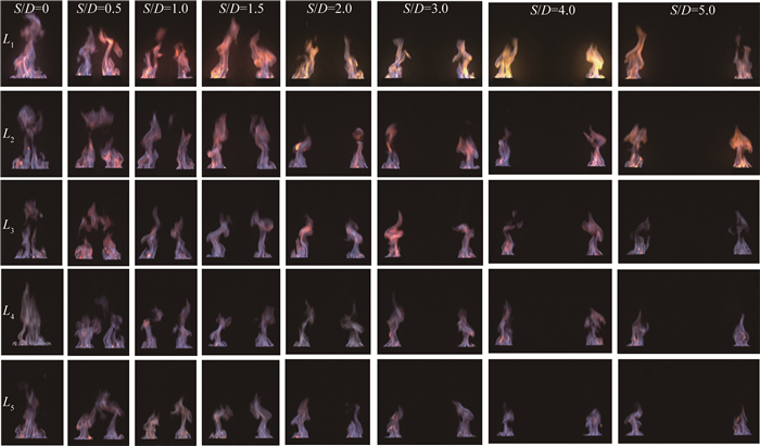 3 不同横向偏距下对称双火源的火焰形态与火焰高度 3.1 火焰形态