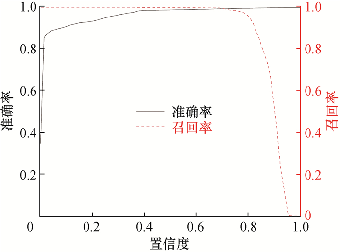 | 图 2 模型训练中准确率、召回率与置信度的关系 |