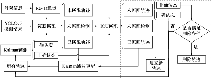 | 图 4 传统DeepSORT算法的数据关联框架 |