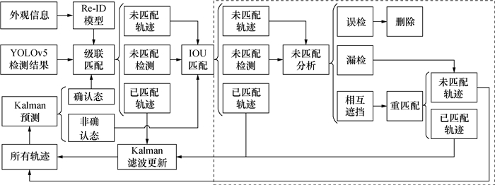 | 图 6 改进DeepSORT算法的数据关联框架 |