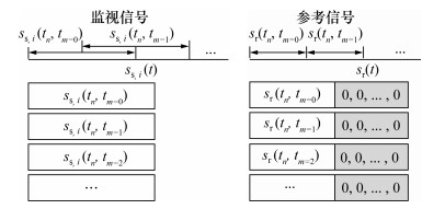 重叠分段后的每段监视信号的长度为N=Neff+Nτ。对于参考信号,通过末尾补零的方式使其每段信号的长度与监视信号保持一致。通过监视信号的分段重叠,可以保证每段监视信号具有足够大的等效脉冲长度和PRF,从而避免距离模糊和速度模糊现象。此外,监视信号重叠分段和参考信号末尾补零的处理方式,可以保证不同时延处的目标的积累增益保持恒定。