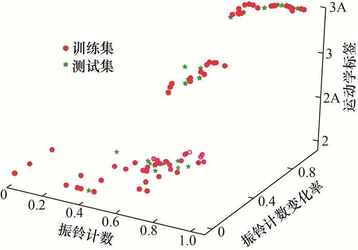 Deng等[40]提出利用机器学习方法对滑坡运动学状态进行自动分类,基于滑坡速度分级标准(见表 1)和2个声发射特征参数(振铃计数和振铃计数变化率),可自动识别速度级别和加速度状态。加速度是速度对时间的一阶导数,振铃计数变化率是振铃计数对时间的一阶导数。除振铃计数外,振铃计数变化率也可作为解释滑坡深部变形行为的特征参数,一定程度上可反映加速度的变化特征。Deng等[40]选择了支持向量机(support vector machine, SVM)、随机森林(random forest, RF)和极限梯度提升(extreme gradient boosting,XGBoost)3种分类算法,使用滑坡模型实验数据集[8]和Hollin Hill滑坡原位监测数据集[12],对机器学习分类模型进行训练和测试。