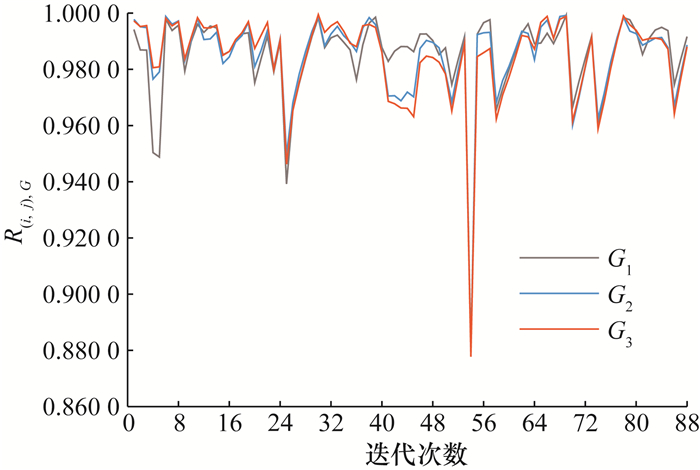 每迭代一次代表一条路段被删除。R(i, j), G越低,说明该路段中断对网络性能的影响越大。G1、G2和G3之间的路段可替代能力具有相似性,同时也存在差异。