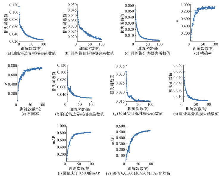 本文的模型训练在DELL Precision 7920服务器上进行,服务器系统为Windows Server2019,并配有64 GB内存的Inter(R)Xeon(R) Gold 6230 @2.1 GHz CPU和10 G显存的NVIDIA GeForce RTX3080 GPU。实验的软件环境为Anaconda 4.10.1科学计算包、Pytorch 1.8.1深度学习框架和Python 3.8,并采用CUDA11.1在训练过程中加速GPU。