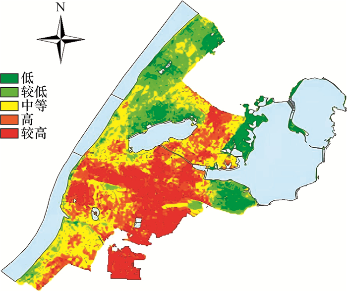| 排水管网密度/(km·km-2) | 0~316 | 316~797 | 797~1 291 | 1 291~1 886 | 1 886~3 227 |