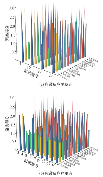 采用K-means聚类方法,得出应激反应平稳者4人,中等水平者17人,严重者9人。