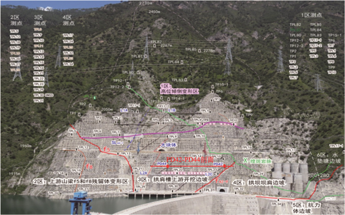 3) 从变形监测资料来看,PD44平洞附近表观变形和深部变形接近。平洞最深处可认为是不动点。本文通过深部变形分析,认为控制锦屏左岸边坡变形的主要因素是煌斑岩脉、断层等软弱带,而深部裂缝对边坡变形的影响较小。
