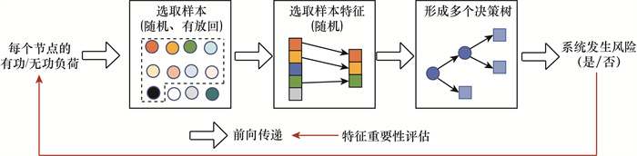 获得运行风险数据集后,根据该数据集对风险特征进行提取。本节采用的随机森林模型具有较强的抗过拟合能力,能够在风险数据集上获得较好的泛化效果,有助于了解各个特征对于风险的贡献程度,其原理如图 1所示[34]。