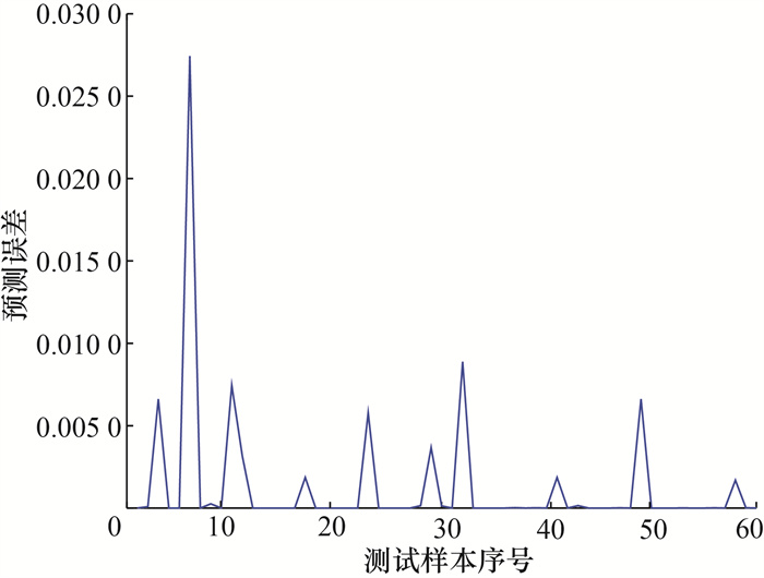 随机森林模型测试样本预测误差如图 10所示,平均预测误差为0.001 3,优质样本率为96.67%。该结果表明,当控制中心将各风险指标值输入随机森林模型后,模型可以快速且准确地计算出各配网切负荷量,提高电网面对未知故障时的适应性和安全性。