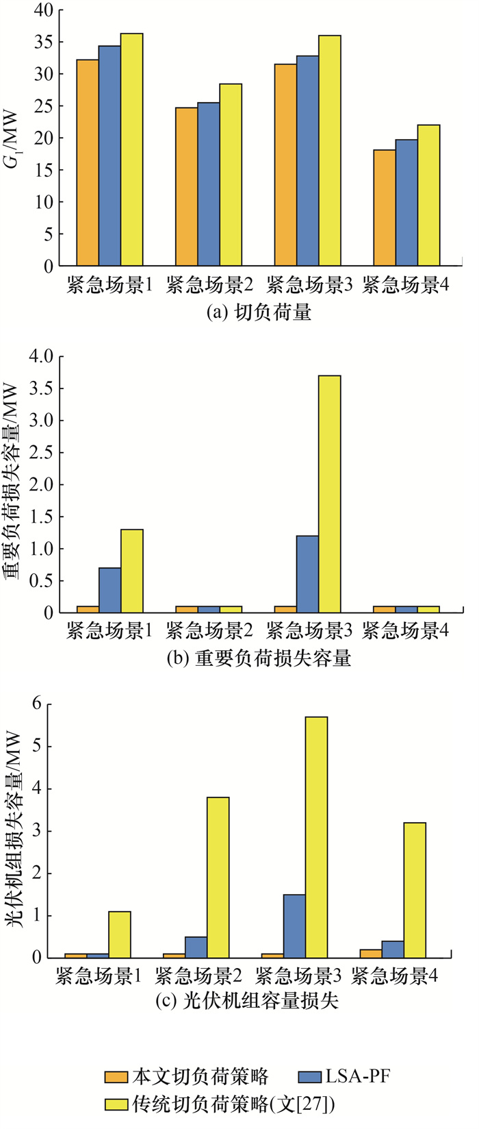 | 图 11 不同切负荷策略在4个紧急运行场景中的对比 |
