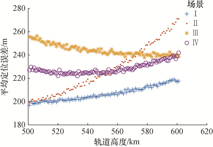 | 图 7 卫星轨道高度与定位误差的关系 |