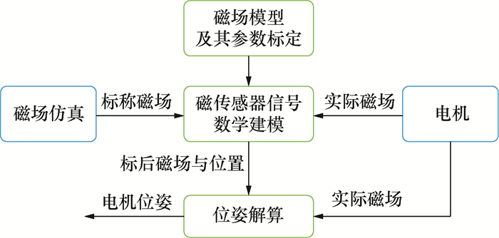 所提方法基本原理如图 3所示,主要包含磁场模型及其参数标定、磁传感器信号数学建模和位姿解算3个步骤。