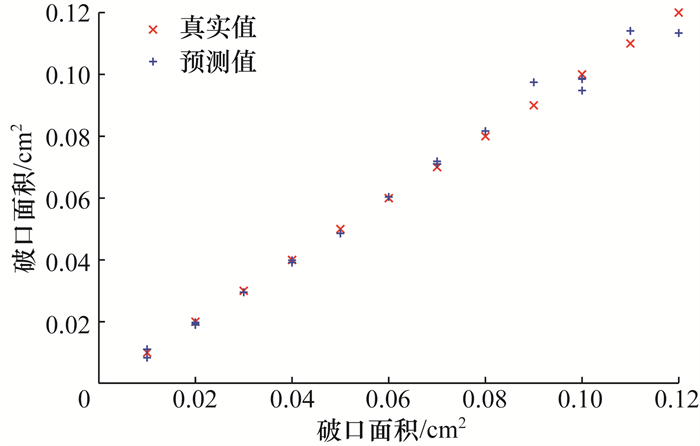 4.2 核电机组故障详细诊断本文进一步使用核电机组数据对提出的算法进行了验证。诊断模型的预测输出值为破口面积大小,范围在0.01~0.13 cm2。为了评估模型的性能,采用RMSE和准确率作为评估指标。具体来说,如果预测值与真实值之间的相对误差不超过10%,则视为预测准确。