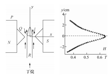 磁场施加在火焰中的磁性物质能使这些物质在空间受力移动,磁力Fm在一维均匀的磁场梯度中可以通过真空磁导率(vacuum magnetic permeability, μ0)、磁化率(magnetic susceptibility, χ)和磁场强度(magnetic-field strength, H)表示,如下所示:
